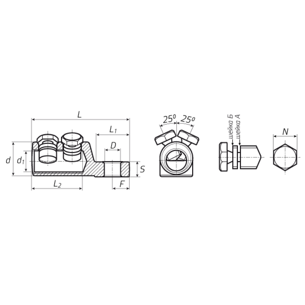 D (мм) | L (мм) | L1 (мм) | L2 (мм) | F (мм) | S (мм) | d (мм) | d1 (мм) | N (мм) |
